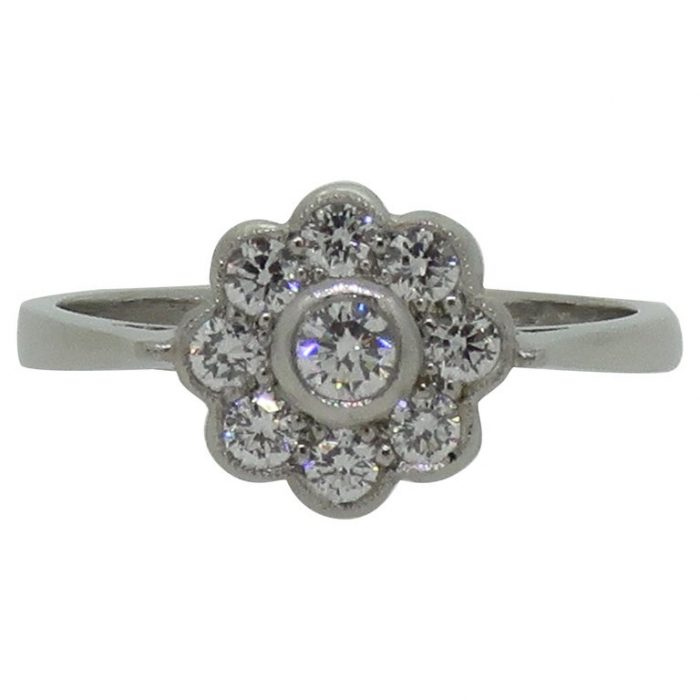 18ct Fire Opal & Diamond Cluster Yellow & White Gold